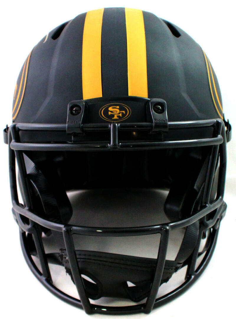 - San Francisco 49ers Full-Size Riddell Eclipse Speed Authentic Helmet – Sleek black design with iconic 49ers branding.