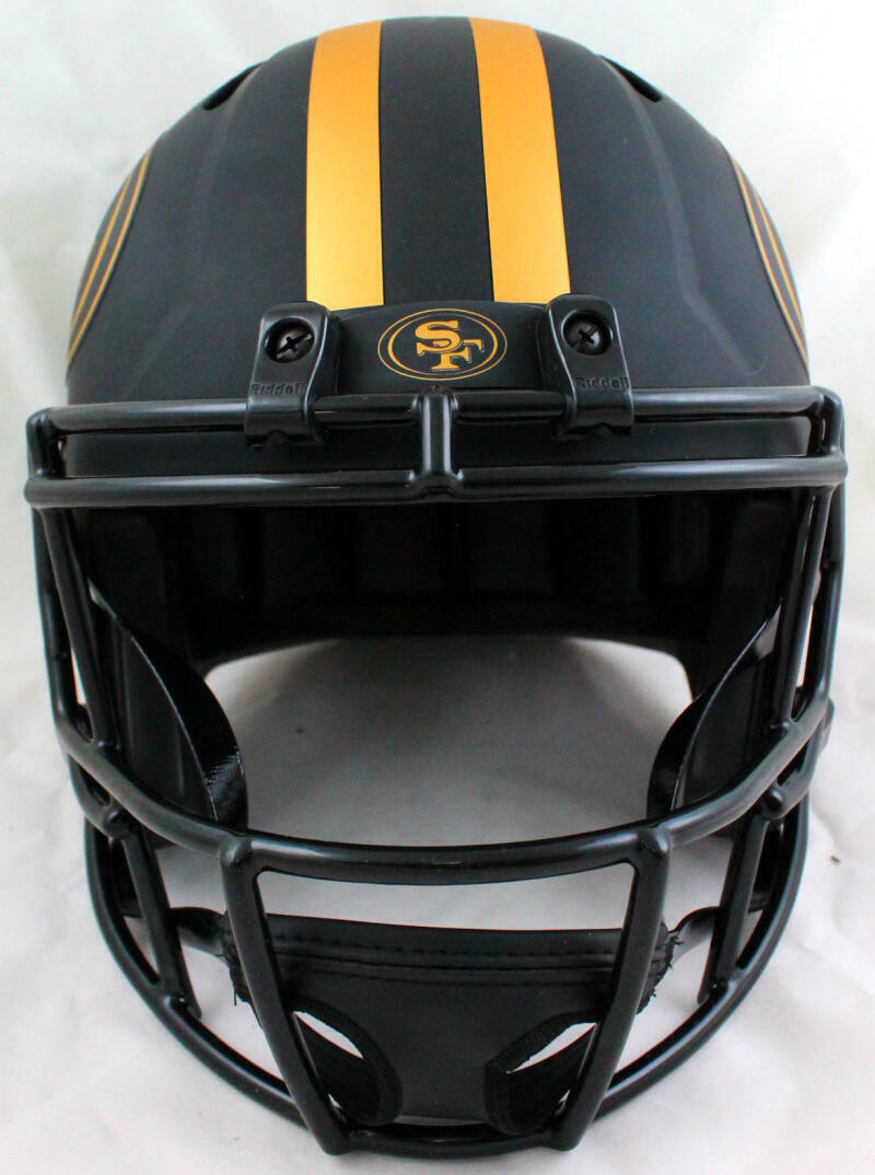 - Features the iconic San Francisco 49ers logo on a Riddell Full-Size Eclipse Replica Helmet.