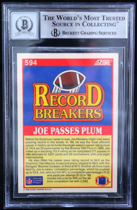 1990 Score #594 Joe Montana Auto San Francisco 49ers BGS Autograph 10