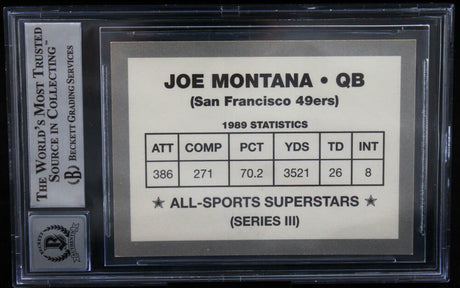 1989-90 All-Sport Superstars #SERIES 3 Joe Montana SF 49ers BGS Autograph 10