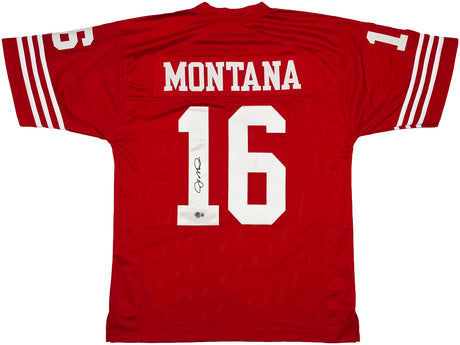 San Francisco 49ers Joe Montana Autographed Red Jersey Beckett BAS QR Stock #253485