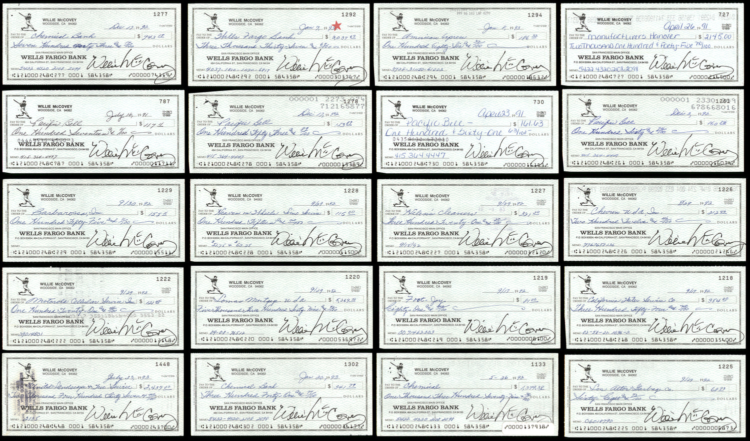 - Lot of 20 authentic Willie McCovey autographed 3x6 checks, each featuring his genuine signature.
