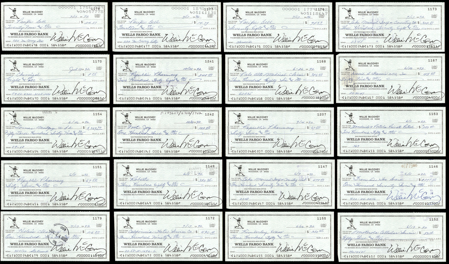 - Includes 20 individually signed 3x6 checks by Willie McCovey