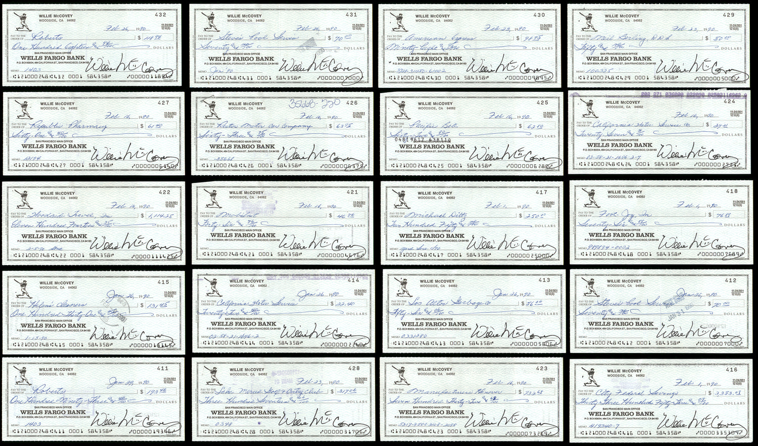 - Includes 50 individually autographed checks by Willie McCovey, making it a valuable bulk lot for collectors and investors.