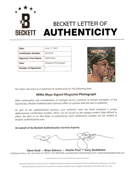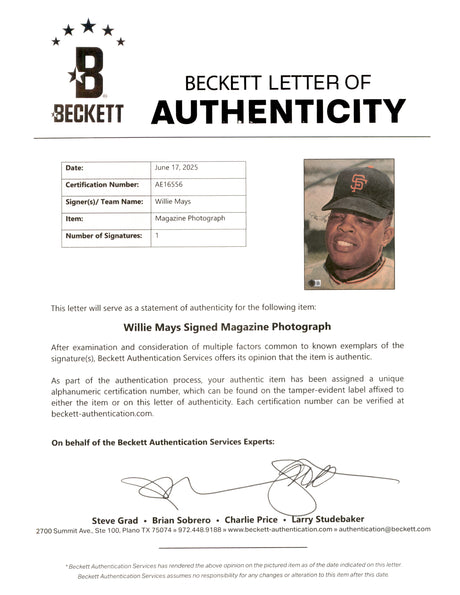 Willie Mays Autographed Framed 8x11.5 Magazine Page Photo San Francisco Giants Beckett BAS #AE16560