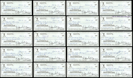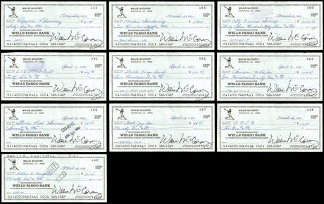 Very low stock (1 unit)$1,199Unit price /Unavailable Lot of 20 Willie McCovey Autographed 3x6 Checks San Francisco Giants SKU #219428