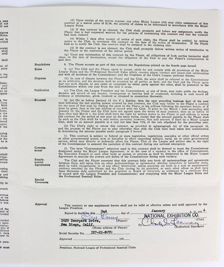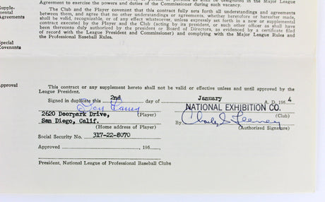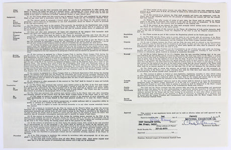 Don Larsen Signed 1964 San Francisco Giants Uniform Player's Contract BAS LOA