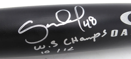 Very low stock (1 unit)$599Unit price /UnavailablePablo Sandoval Autographed Oakley Bat San Francisco Giants "WS Champs 10/12" Beckett BAS QR #BU87132