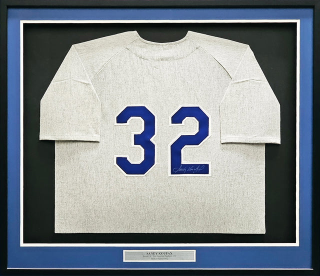 Own a piece of baseball history with this framed Grey Jersey, approximately 31x36, personally autographed by legendary pitcher Sandy Koufax. A must-have for any serious collector, this premium display item pays tribute to one of baseball’s greatest athletes.