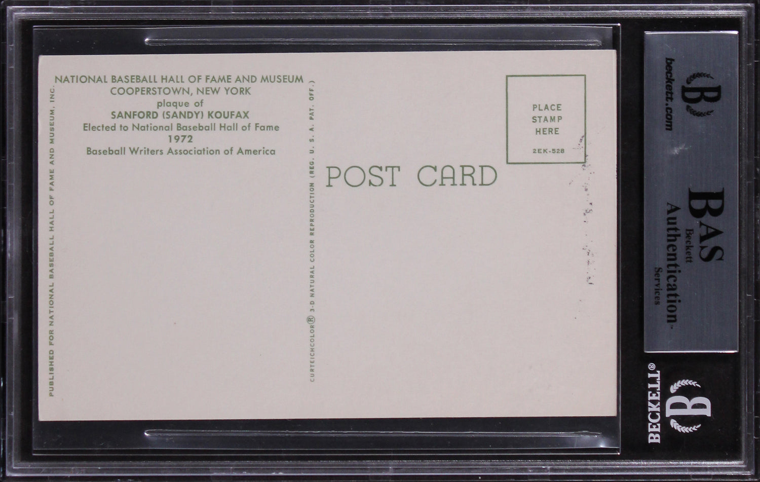 Dodgers Sandy Koufax Authentic Signed Hall of Fame Plaque Postcard BAS Slabbed