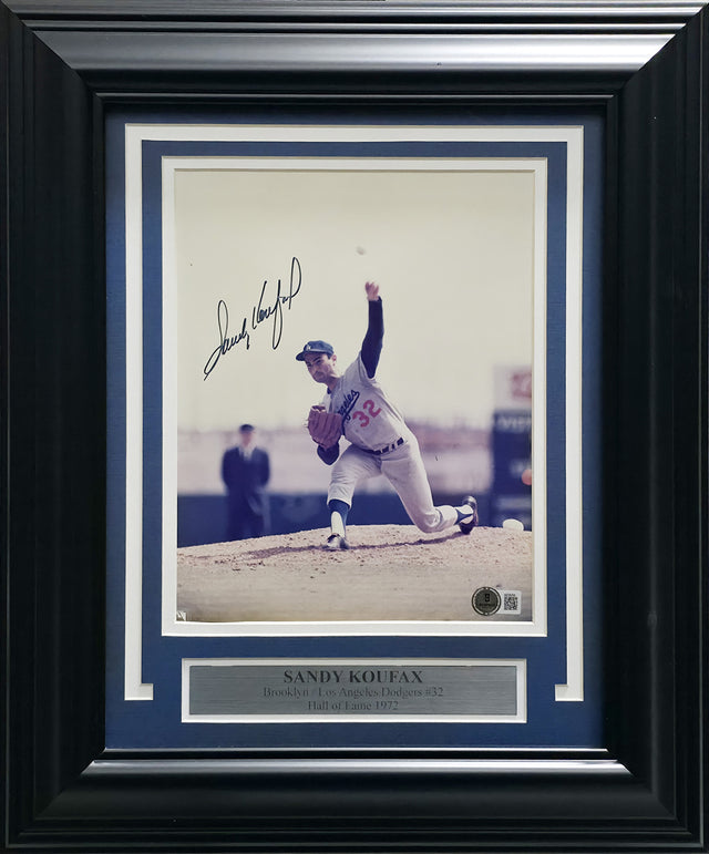 Celebrate the legacy of one of baseball's all-time greats with this Framed 8x10 Photo hand-signed by Sandy Koufax, a must-have collectible for any serious sports memorabilia enthusiast. This stunning piece captures the spirit of the legendary Los Angeles Dodgers pitcher, known for his dominance on the mound during the 1960s and his historic role in multiple World Series championships. Professionally framed to approximately 15x18 inches, it’s ready to display in your sports room, office, or memorabilia wall. Certified by Beckett Authentication Services (BAS), this high-value item includes a tamper-proof hologram and full-page Certificate of Authenticity, ensuring your investment is both authentic and lifelong.