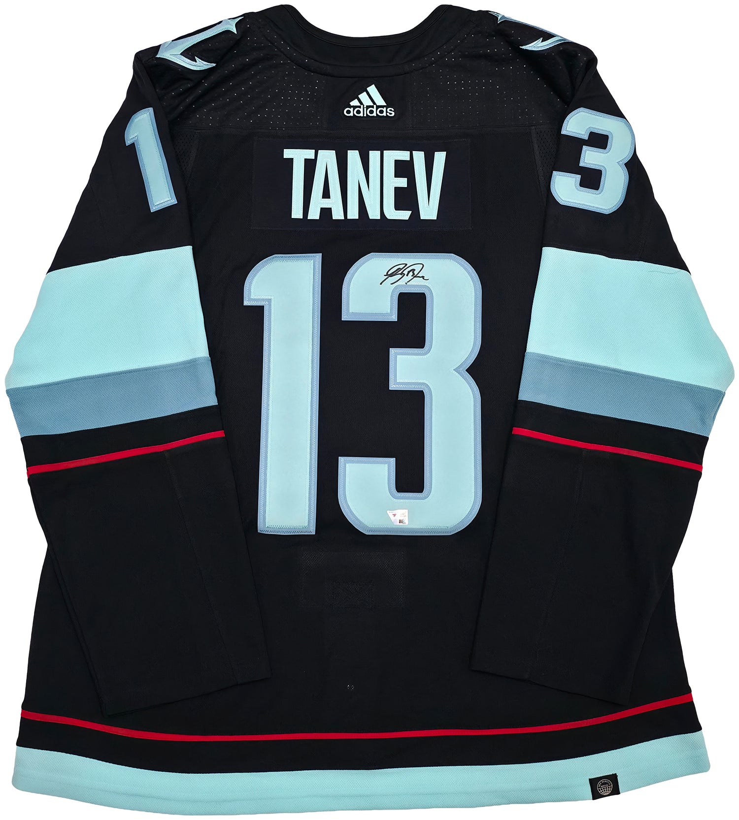 Celebrate the spirit of one of the NHL's most exciting franchises with this Blue Adidas Seattle Kraken Authentic Primegreen Jersey, hand signed by rising star Brandon Tanev. A must-have for dedicated Kraken fans and sports memorabilia collectors alike, this jersey blends on-ice authenticity with collectible value. Certified by Fanatics and stamped with their tamper-proof hologram, you can trust in the legitimacy of this exclusive piece.