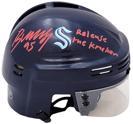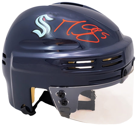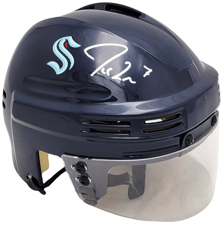 Matty Beniers Autographed Seattle Kraken Navy Mini Helmet Fanatics Holo Stock #205692