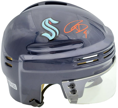 Jared McCann Autographed Seattle Kraken Blue Mini Helmet Fanatics Holo Stock #200303