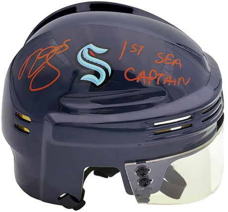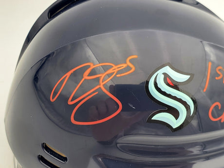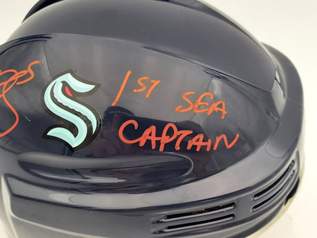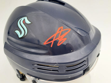 Jared McCann Autographed Seattle Kraken Blue Mini Helmet Fanatics Holo Stock #200303