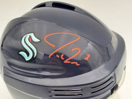 Jamie Oleksiak Autographed Seattle Kraken Blue Mini Helmet Fanatics Holo Stock #200298