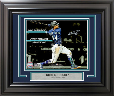 Seattle Mariners Julio Rodriguez Autographed Framed Blue Nike Jersey Beckett BAS QR Stock #256421