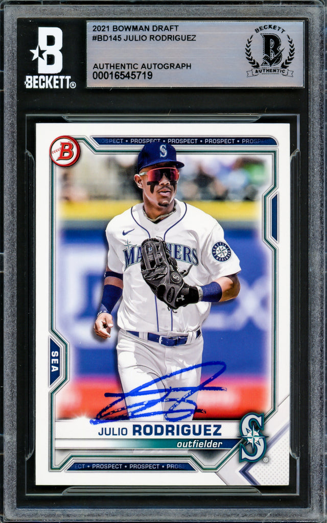 Julio Rodriguez Autographed 2021 Bowman Draft Card #BD145 Seattle Mariners Beckett BAS #16545719