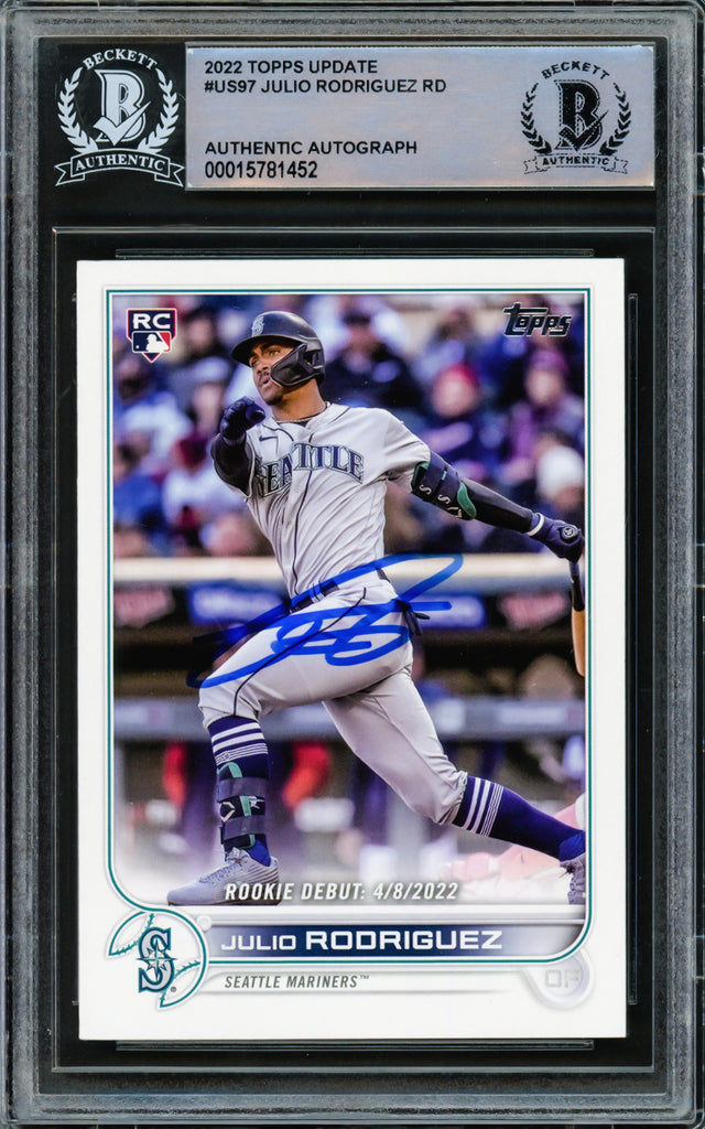 Julio Rodriguez Autographed 2022 Topps Update Rookie Card #US97 Seattle Mariners Beckett BAS Stock #216868