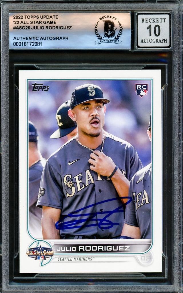 Julio Rodriguez Autographed 2022 Topps All Star Rookie Card #ASG-26 Seattle Mariners Auto Grade Gem Mint 10 Beckett BAS #16172081