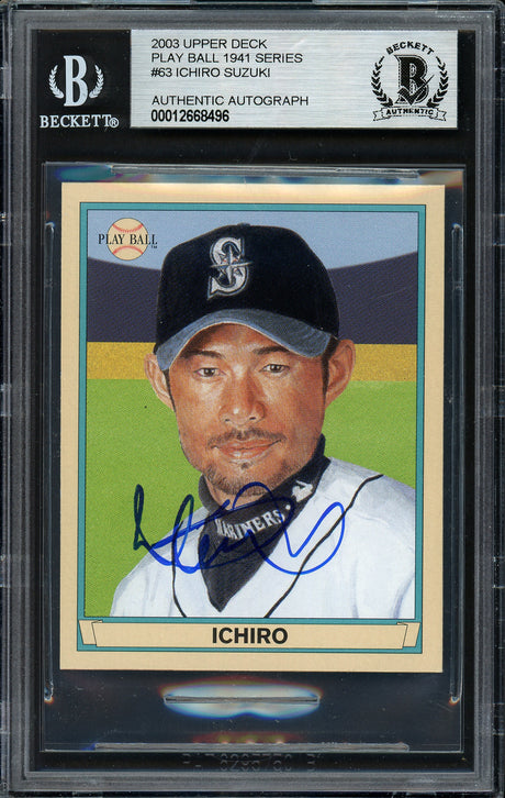 Ichiro Suzuki Autographed 2002 Topps 206 Card #22 Seattle Mariners Beckett BAS Stock #191245