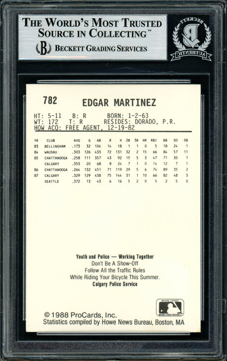 Edgar Martinez Autographed 1988 Procards Rookie Card #782 Seattle Mariners Beckett BAS Stock #147105