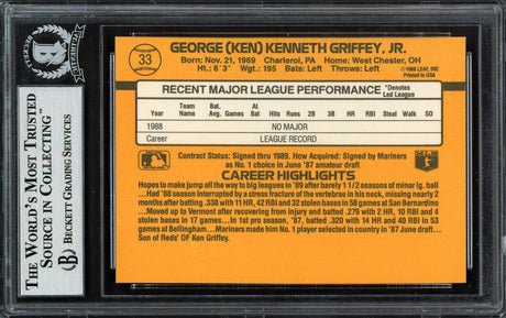 Ken Griffey Jr (Seattle Mariners) 1989 Upper Deck Baseball #1 RC Rookie Card - PSA 9 MINT
