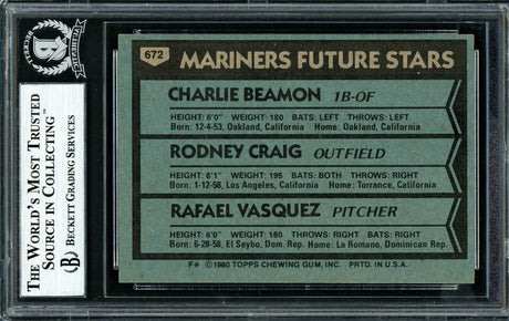 Rodney Craig Autographed 1980 Topps Card #672 Seattle Mariners Beckett BAS #12306792