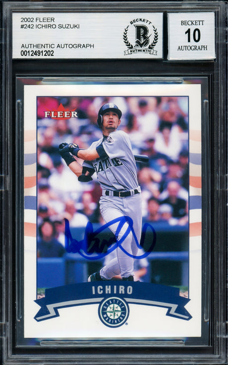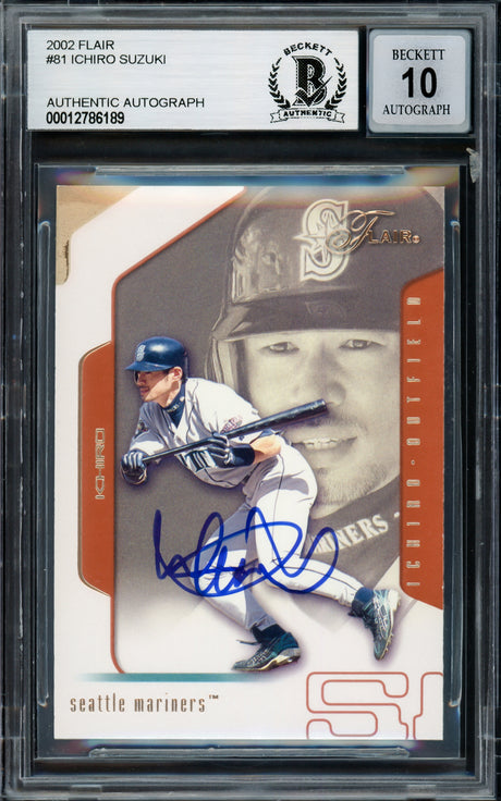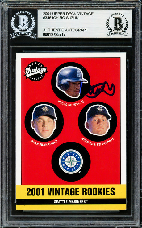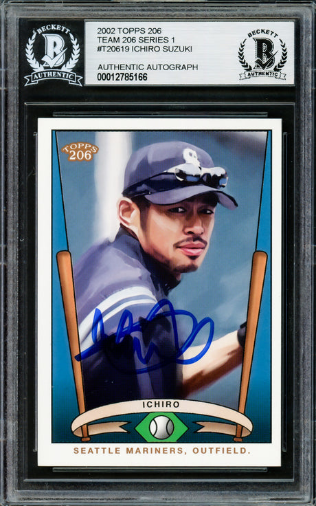 Ichiro Suzuki Autographed 2002 Topps 206 Card #T206-19 Seattle Mariners Beckett BAS Stock #220253