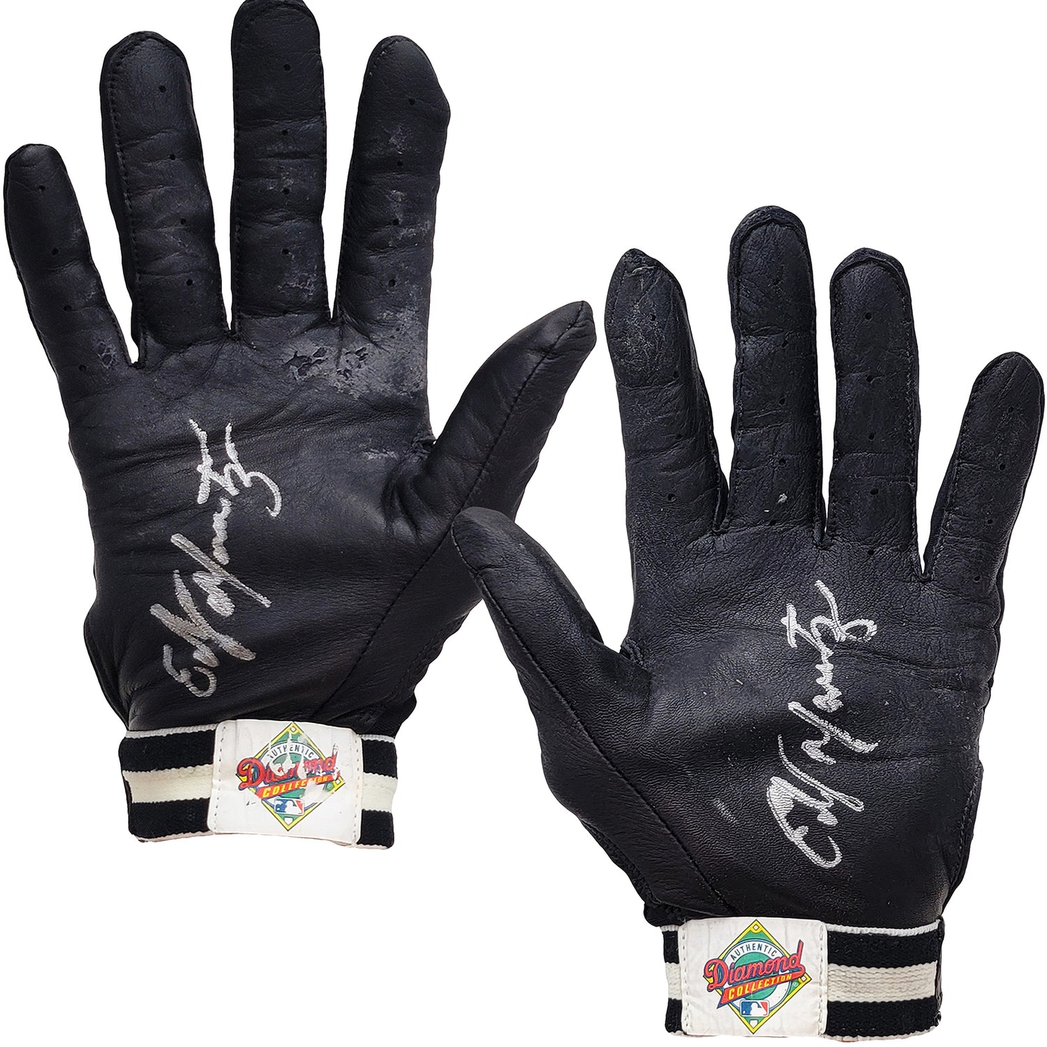Own a rare piece of baseball history with this game-used pair of Franklin Diamond Collection Black Batting Gloves, personally worn and hand-signed by Edgar Martinez. A legendary figure in Seattle Mariners history, Martinez used these gloves during an official MLB game, making them a must-have for serious collectors and fans.