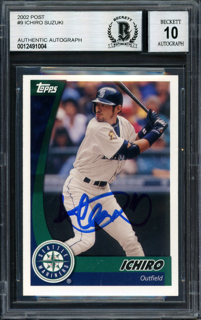 Ichiro Suzuki Autographed 2002 Topps Post Card #9 Seattle Mariners Auto Grade 10 Beckett BAS #12491004