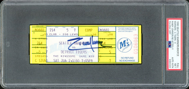 Randy Johnson Autographed June 2nd, 1990 Ticket Seattle Mariners PSA 7 No Hitter PSA/DNA #63604323