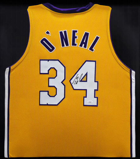 Los Angeles Lakers Shaquille O'Neal Autographed Framed Gold Jersey JSA Witness Stock #253343