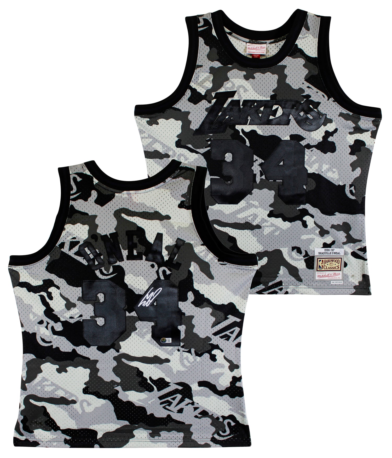 Lakers Shaquille O'Neal Signed Alt Camo M&N 1996-97 HWC Swingman Jersey BAS Wit