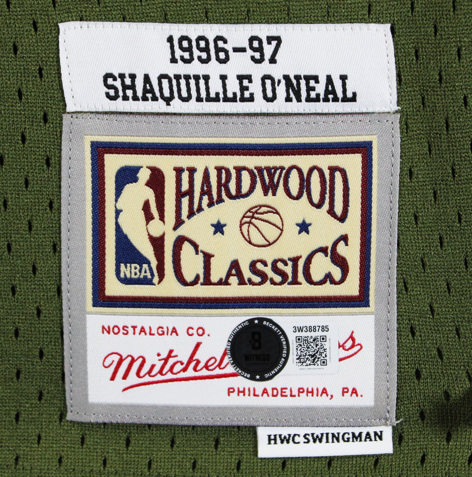 - Official Green Mitchell & Ness 1996-97 Hardwood Classics Swingman Jersey – capturing the style worn by Shaq during his early dominance in LA