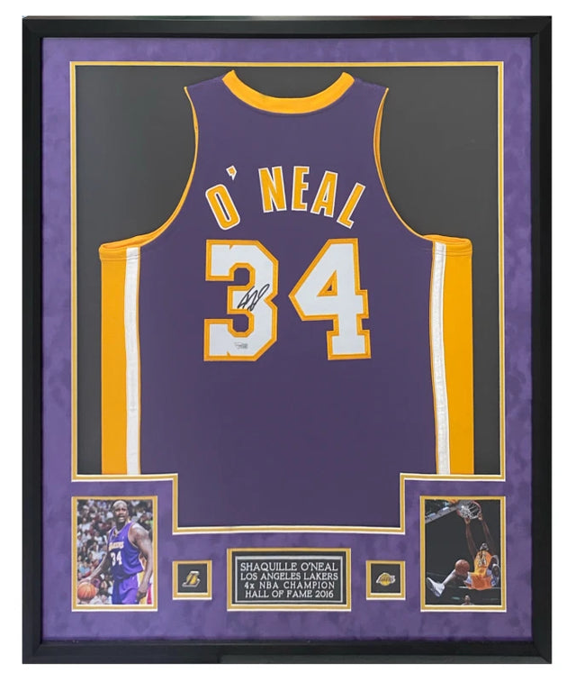 This exclusive collectible is backed by a rigorous authentication process, ensuring its legitimacy and eliminating any possibility of duplication or fraud. Whether you're a lifelong Lakers fan, a memorabilia investor, or simply admire the legacy of Shaq, this framed jersey is the perfect addition to your collection. Secure this piece of NBA history today!