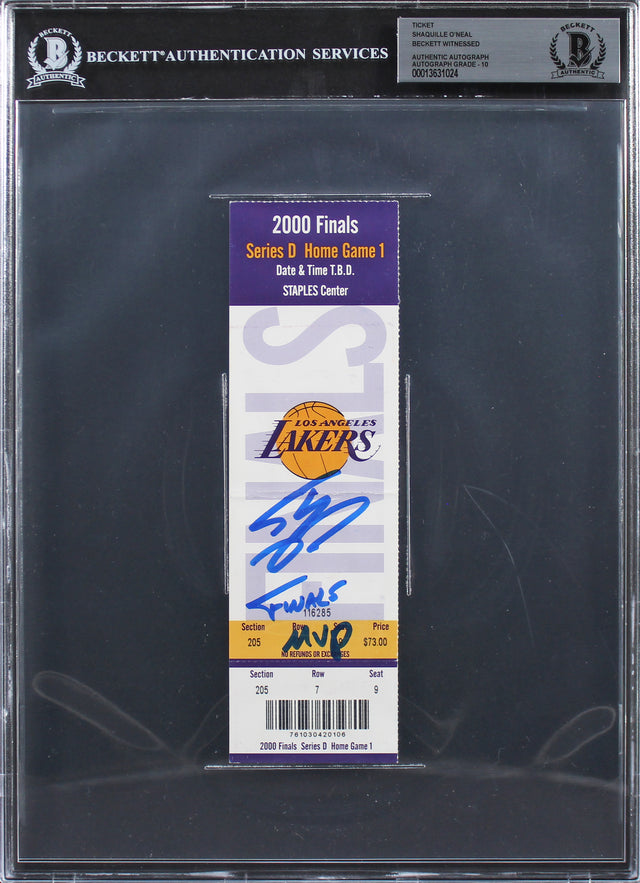 Shaquille O'Neal Finals MVP Signed 2000 Finals GM 1 Ticket Stub Auto 10 BAS Slab