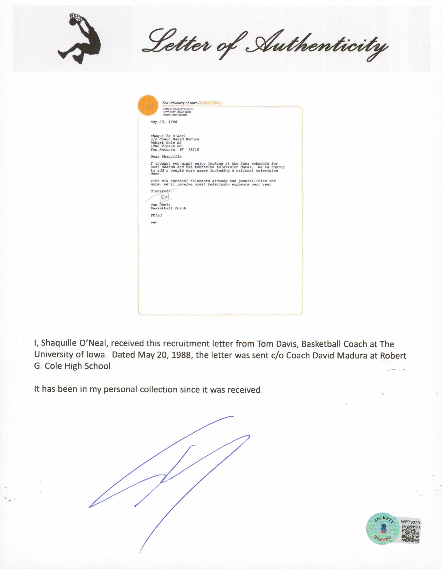 - Letter of Authenticity included from Shaquille O'Neal, witnessed and verified in the presence of a representative from Beckett Authentication Services.