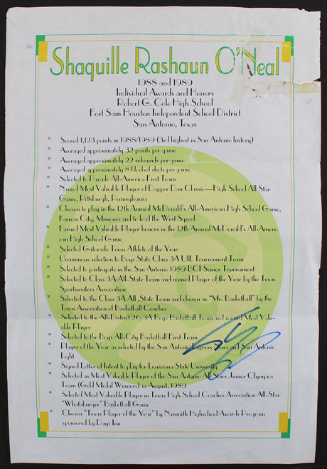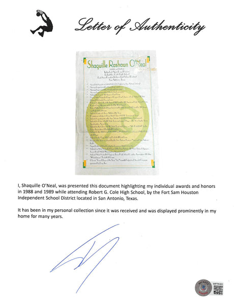 Shaquille O'Neal Signed 12x17.75 High School Awards Poster BAS Witness #WP79154