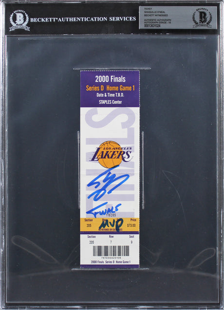 Shaquille O'Neal Finals MVP Signed 2000 Finals GM 1 Ticket Stub Auto 10 BAS Slab