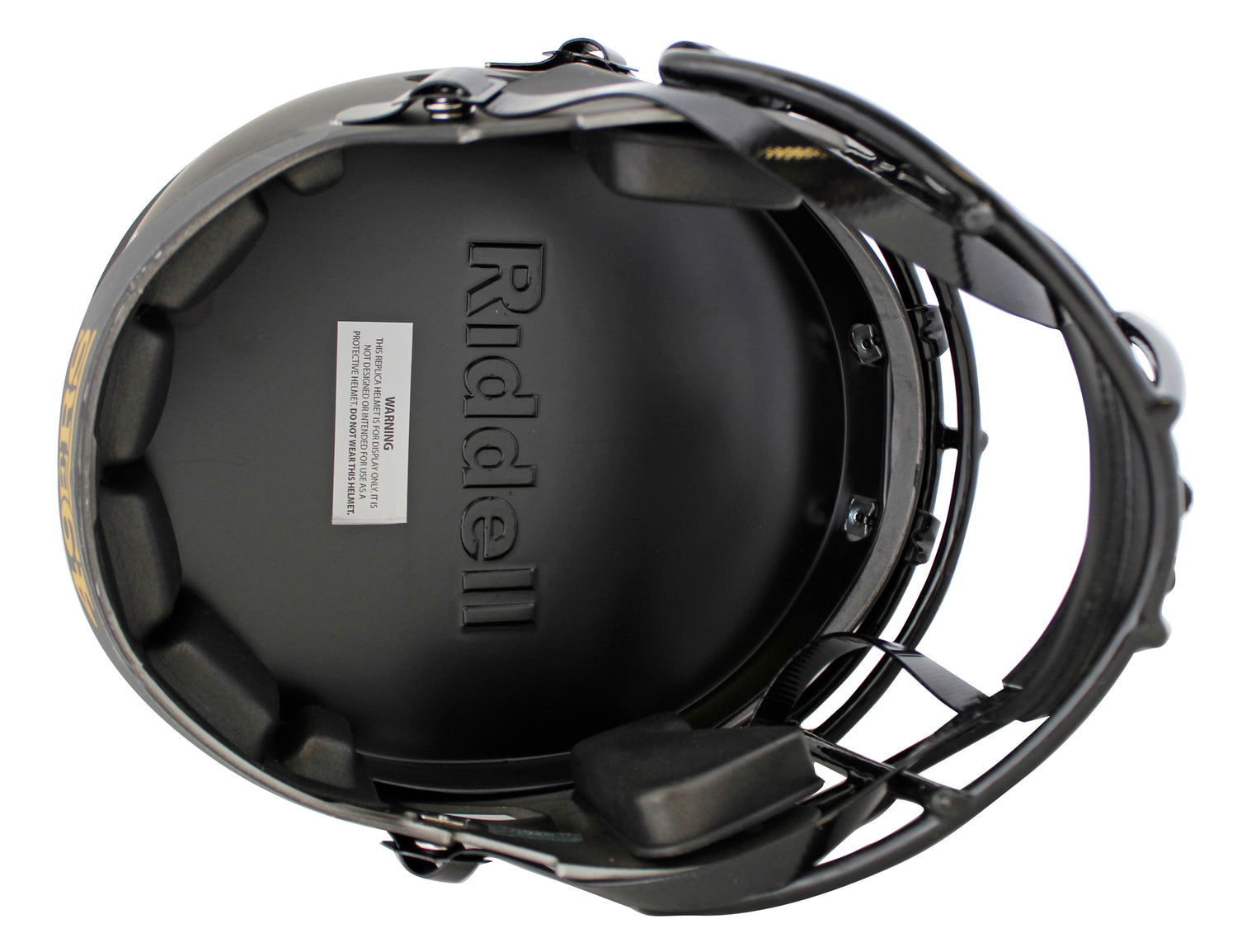 Own a rare piece of San Francisco 49ers history with this Eclipse Full-Size Speed Replica Helmet, hand-signed by Joe Montana, Steve Young, and Brock Purdy. This striking black alternate Riddell helmet unites two Hall of Fame quarterbacks and the franchise’s rising star, making it an essential addition to any sports memorabilia collection.