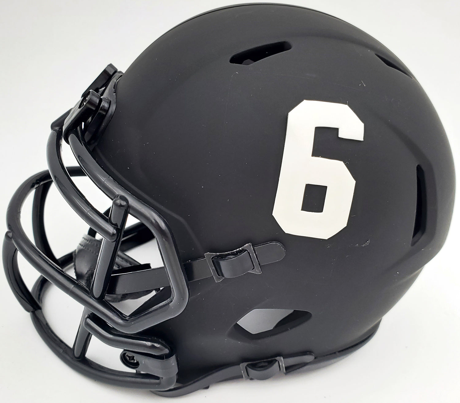 Own a piece of Alabama Crimson Tide history with this Eclipse Black Speed Mini Helmet, hand-signed by Devonta Smith. This collectible is a must-have for fans and memorabilia enthusiasts, celebrating Smith’s legendary college football career.