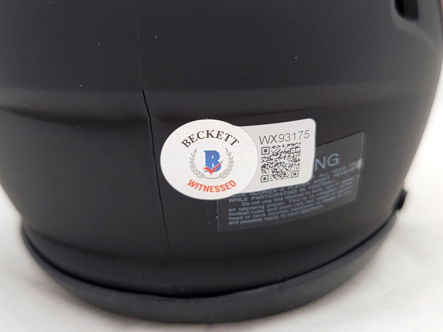 Drake London Autographed Atlanta Falcons Eclipse Black Speed Mini Helmet Beckett BAS QR Stock #206128 is backordered and will ship as soon as it is back in stock.