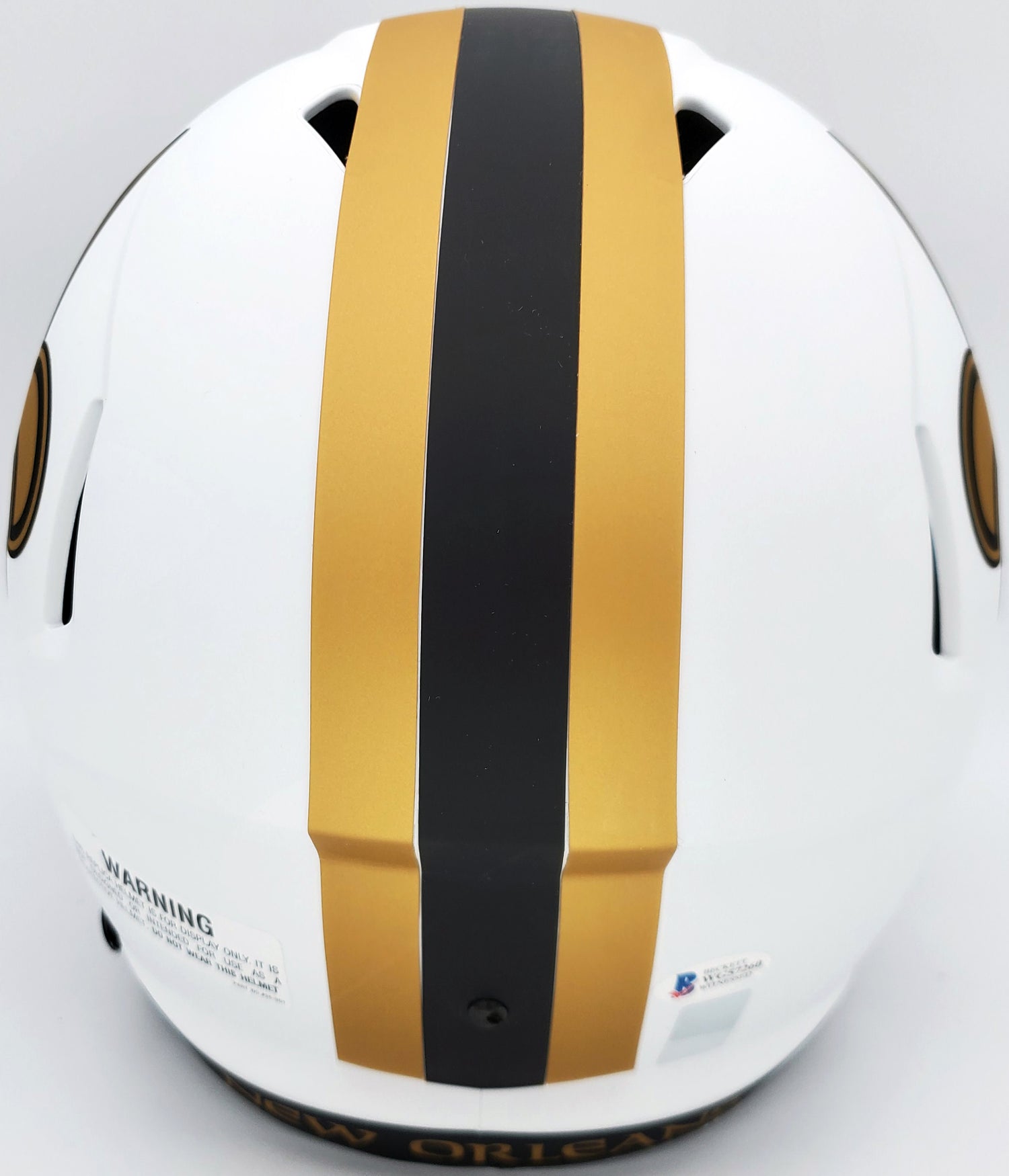 - Official New Orleans Saints Lunar Eclipse White Full-Size Replica Speed Helmet – a sleek, modern design for a standout display.