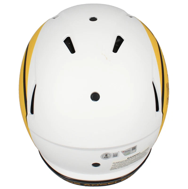 Celebrate the rising stars of the NFL with this exclusive Los Angeles Rams Lunar Eclipse Authentic Speed Helmet, hand-signed by standout playmakers Kyren Williams and Puka Nacua. This sleek, matte-black helmet pays tribute to Rams fandom in a bold, modern style—making it a must-have centerpiece for any serious football memorabilia collection. Whether you're a lifelong Rams fan or a seasoned collector of NFL history, this piece offers both visual impact and lasting value.