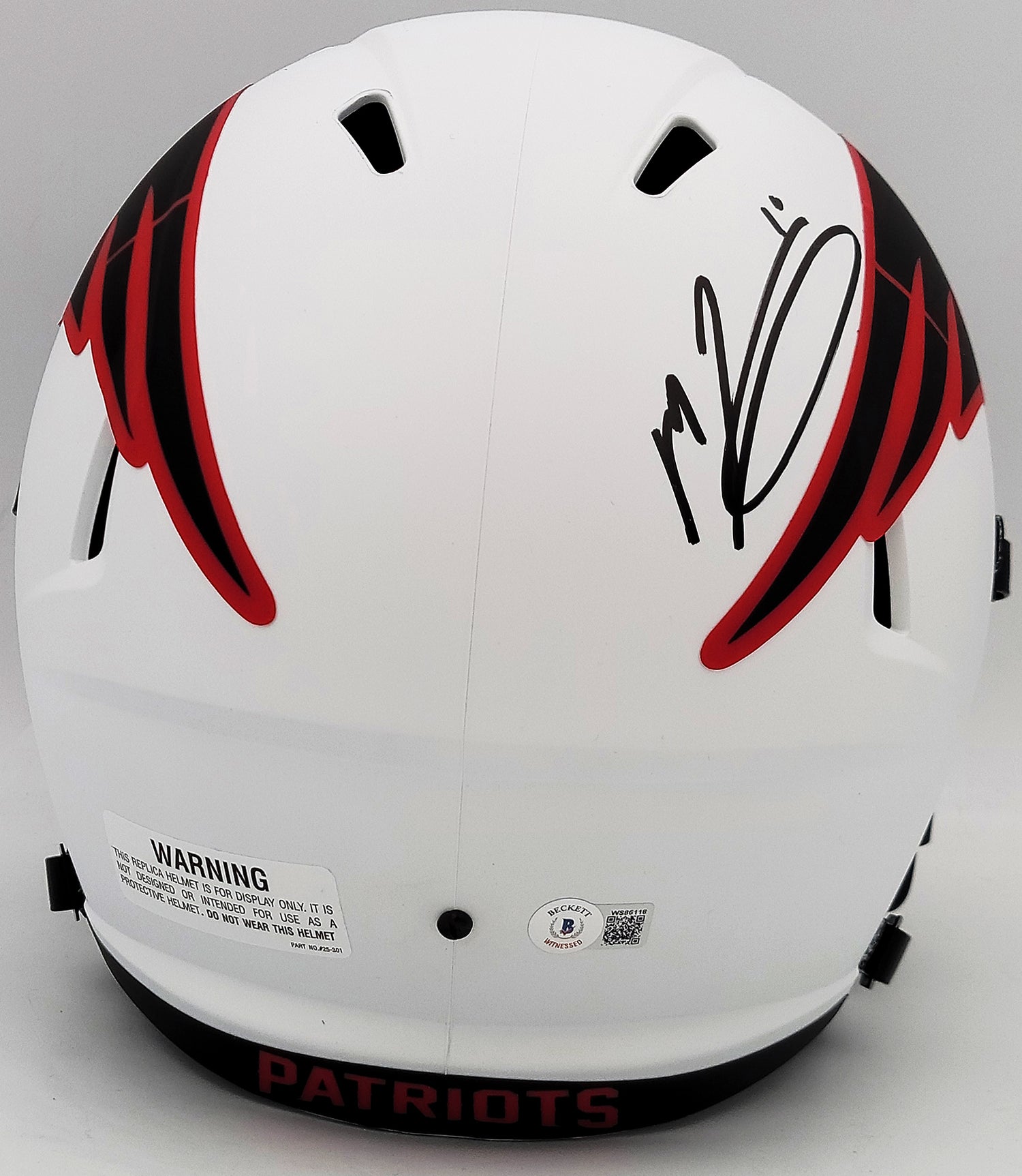 Mac Jones Autographed New England Patriots Lunar Eclipse White Full Size Replica Speed Helmet Beckett BAS QR Stock #202966