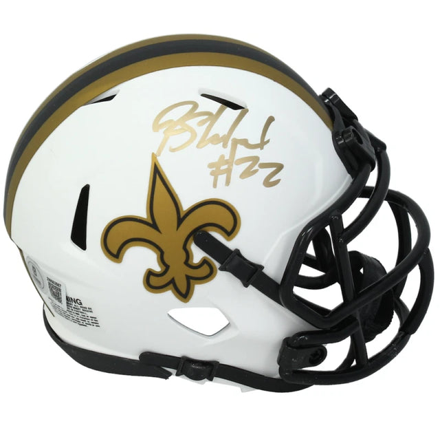 This officially licensed New Orleans Saints mini Riddell Speed helmet is a must-have for fans and collectors alike. Personally hand-signed by standout wide receiver Rashid Shaheed, this piece of memorabilia celebrates the speed and talent that has made him a rising star in the NFL. Whether you're a lifelong Saints supporter or a fan of emerging talent in professional football, this autographed helmet makes an unforgettable addition to any sports collection.