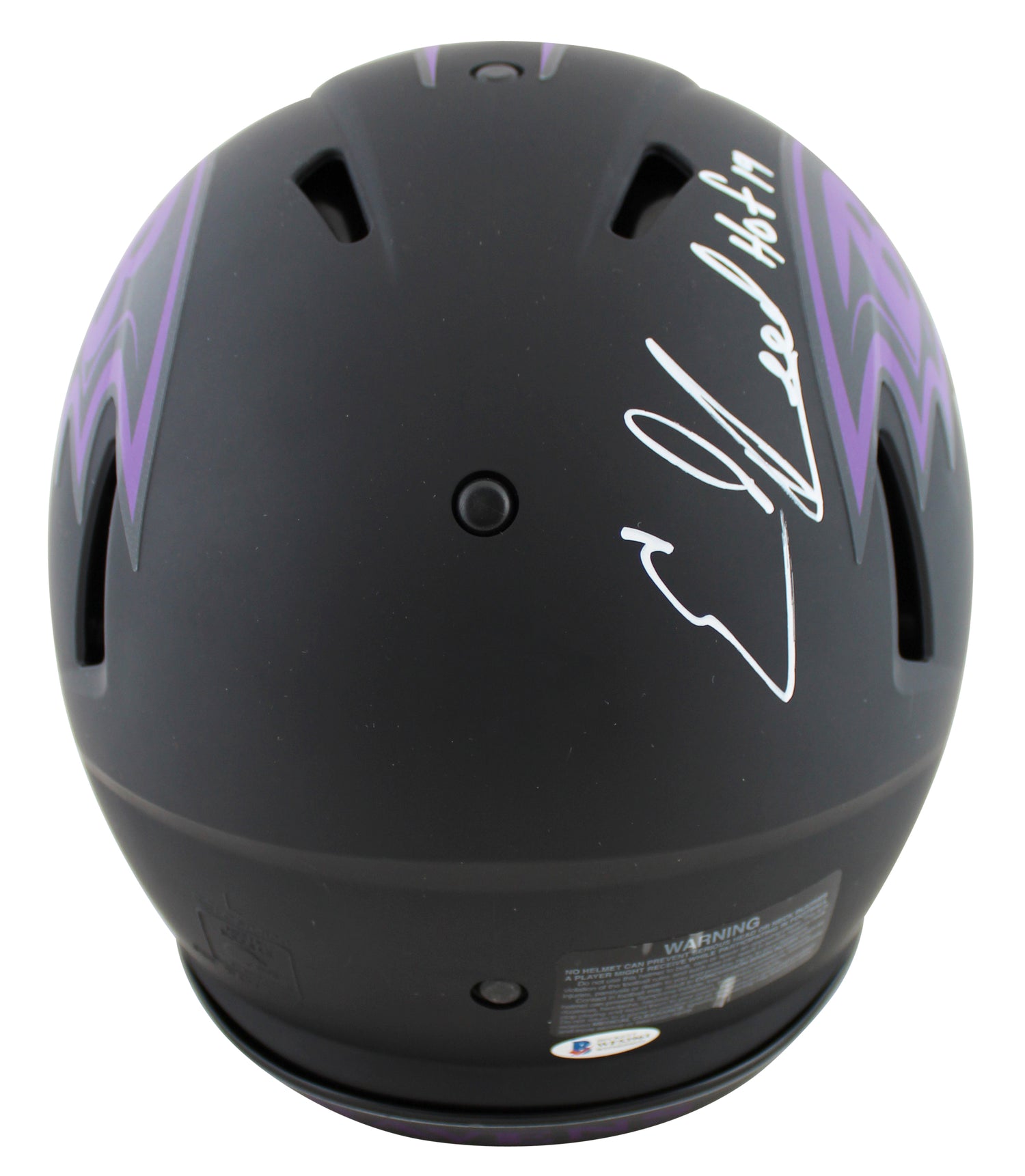 Own a piece of Baltimore Ravens history with this Autographed Alternate Eclipse Riddell Authentic Full-Size Speed Proline Helmet, personally signed by Hall of Famers Ray Lewis & Ed Reed. This incredible collectible also features the exclusive inscriptions "HOF 18 (Lewis), HOF 19 (Reed)," commemorating their legendary careers and impact on the game.