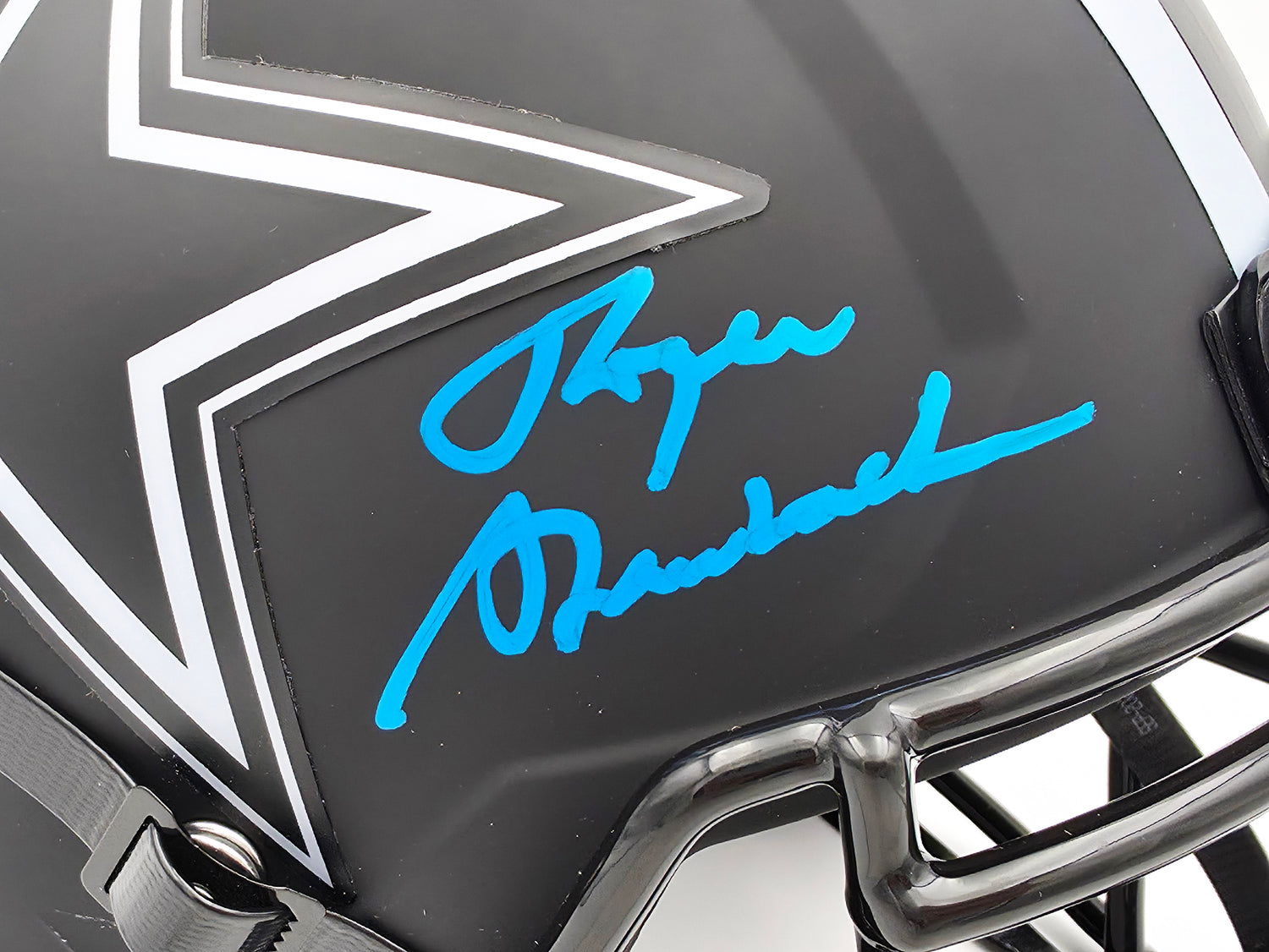 Own a piece of Dallas Cowboys history with this Roger Staubach Signed Eclipse Black Full-Size Speed Replica Helmet. A true collector’s item, this helmet showcases the autograph of legendary quarterback Roger Staubach, a Hall of Famer and Super Bowl champion who helped define the Cowboys' legacy.