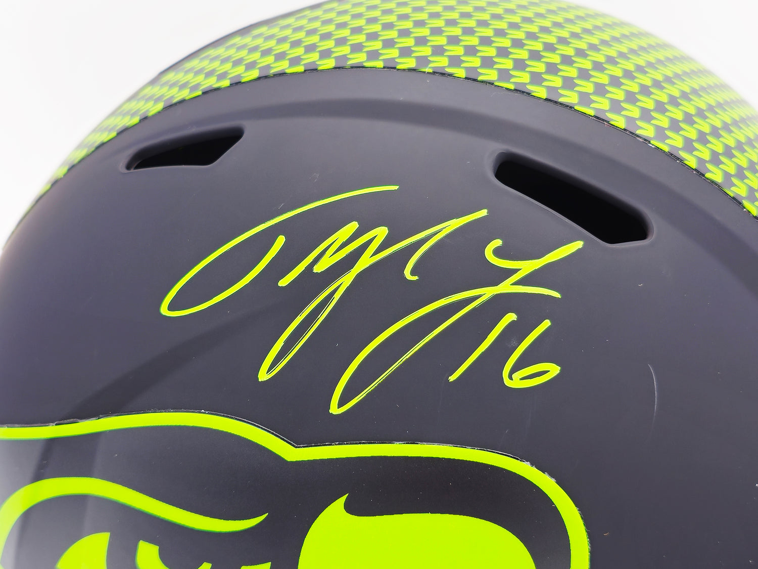 Tyler Lockett Autographed Seattle Seahawks Eclipse Black Full Size Speed Replica Helmet MCS Holo Stock #236379